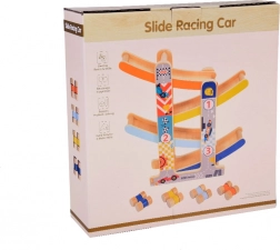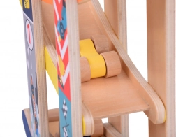Pista pe mai multe niveluri, cu coborâre lină a mașinuțelor, îi ține pe copii implicați mult timp și, în același timp, le dezvoltă răbdarea și concentrarea.