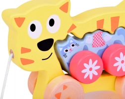 - jucărie de tras cu șnur, 2‑în‑1 (pisică mare + pisoiaș mic)