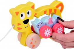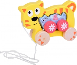 Această familie de pisici de tras din lemn este însoțitorul ideal pentru primii pași. Pisica mai mare are în corp o deschidere pentru apucare ușoară, șnur atașat și roți stabile. Pisoiașul mai mic urmează fidel, oferindu-le copiilor bucurie în mișcare și întărindu-le curiozitatea naturală.