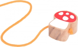 Șnurul ergonomic, terminat cu un burete otrăvitor din lemn, ușurează prinderea și manevrarea jucăriei de către mânuțele mici.