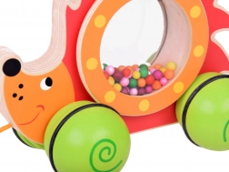 - Jucărie de tras pe roți cu biluțe zornăitoare