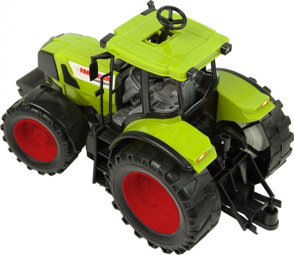 Execuția detaliată a tractorului și a remorcii, roțile mari și cabina transparentă stimulează imaginația și oferă o experiență autentică de condus.