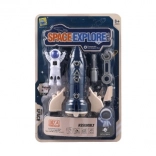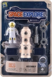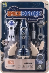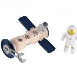 Set complet pentru înșurubat, cu rachetă, modul spațial și figurină astronaut, care susține jocul creativ și învățarea prin joacă.