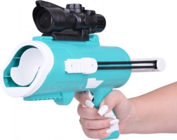 - Vizor pentru țintire sub formă de telescop permite o țintire precisă în timpul bătăilor cu zăpadă. Copiii își pot exersa precizia și organiza turnee de iarnă.