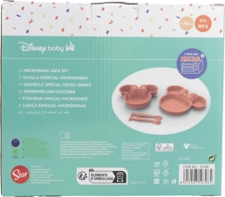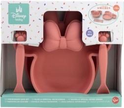 Acest set de masă în patru piese Minnie Mouse adaugă un element distractiv fiecărei mese a copilului dvs. Conține farfurie, castron și un set de tacâmuri (lingură și furculiță), care sunt ideale pentru copii.