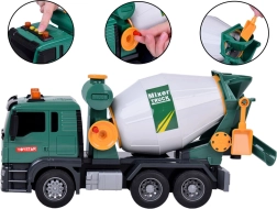 Această betonieră verde este ideală pentru micii iubitori de vehicule de construcții. Este echipată cu efecte sonore și părți mobile, ceea ce adaugă mai mult realism fiecărui joc. Copiii pot roti tamburul betonierei, imitând amestecarea betonului, și datorită jgheabului funcțional pot „turna” amestecul.
