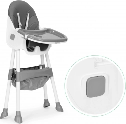 Cu o singură apăsare, pliezi scăunelul și economisești spațiu. Coșul practic de sub șezut găzduiește șervețele, bavete și jucării – totul la îndemână.