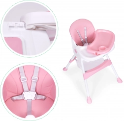 Scăunelul de masă ECOTOYS pentru copii de la 6 la 36 de luni îmbină o construcție stabilă cu un șezut confortabil. Are tăviță dublă detașabilă, compatibilă cu mașina de spălat vase, centură de siguranță în 5 puncte, picioare antiderapante și un coș de depozitare sub șezut. Datorită greutății reduse și construcției pliabile, se transportă și se depozitează ușor.
