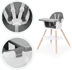 Datorită designului bine gândit, asigură o poziție sigură și confortabilă. Centura în 5 puncte fixează copilul în siguranță, tava reglabilă cu 3 poziții se detașează ușor și se spală simplu, marginile înălțate și suportul pentru pahar previn vărsările. Husa din piele ecologică rezistentă se curăță ușor, capetele antiderapante protejează podeaua și împiedică alunecarea scaunului. Polița practică de sub șezut găzduiește baveta sau șervețelele și în același timp crește stabilitatea.