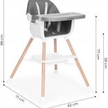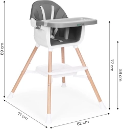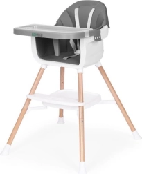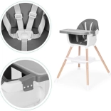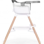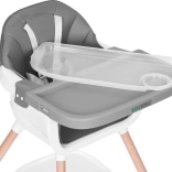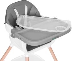 Acest scaun modern facilitează mesele în familie – copilul poate sta la masă, observa, imita și dobândi obiceiuri corecte. Tava lată este utilă nu doar pentru mâncat, ci și pentru joacă, desen sau construit cu cuburi, devenind rapid o piesă preferată de mobilier pentru copii.