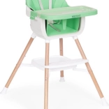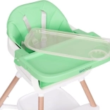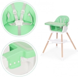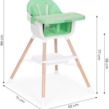 Scăunelul practic de masă pentru copii 2 în 1 de la ECOTOYS combină scaunul înalt cu un înălțător fixabil pe un scaun obișnuit. Oferă o construcție stabilă cu picioare metalice, tavă dublă ușor de curățat și compatibilă cu mașina de spălat vase, centură de siguranță în 5 puncte, capete antiderapante și suport pentru picioare. Ideal pentru copii de la 6 la 36 de luni, cu o capacitate de încărcare de 20 kg.