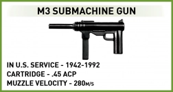 Un tanchist american cu pistol-mitralieră M3 și un infanterist cu M1 Garand, alături de un segment de gard și gard viu, creează o scenă completă.