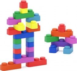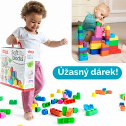 În pachet găsești o combinație de blocuri simple, duble și triple, datorită cărora se pot construi forme simple sau mai complexe. Materialul este moale și sigur, potrivit pentru copiii mai mici și pentru utilizare acasă sau în grădiniță.
