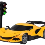 Trăiți curse realiste cu această mașină sport RC cu setul volan + pedale și semafor funcțional. Vehiculul futurist, cu șasiu coborât, spoiler spate și faruri frontale, oferă aderență excelentă datorită anvelopelor din cauciuc. Controlul este intuitiv – direcționați cu volanul, iar pedalele controlează accelerația și mersul înapoi. Acumulatorul reîncărcabil reduce costurile de utilizare.