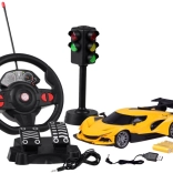 - Set complet: mașină, volan, pedale, semafor, acumulator și cablu USB.