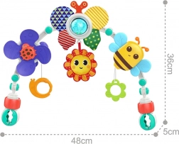 Arcul suspendat universal pentru cărucior, pătuț și scaun auto oferă bebelușului multă distracție și stimuli. Datorită montajului ușor și posibilității de ajustare a unghiului, asigură utilizare comodă în fiecare zi. Jucăriile suspendate susțin dezvoltarea motricității, coordonarea mână–ochi și stimularea senzorială, în timp ce culorile și formele vii încurajează concentrarea și curiozitatea.