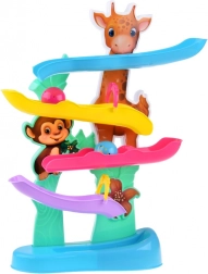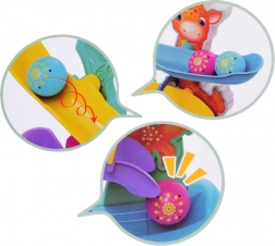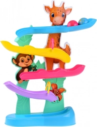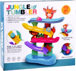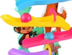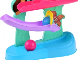 Această pistă colorată cu bile, inspirată de junglă, aduce copiilor bucuria observării mișcării și a descoperirii. Patru rampe în culori vii ghidează bilele în jos, unde îi așteaptă sunete de animale și efecte de tobiță, care îi motivează și mai mult la joacă.