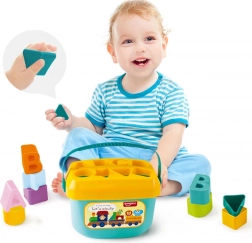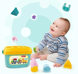 Capacul galben cu decupaje îi conduce pe copii să potrivească formele corecte. Susține gândirea logică și precizia mișcărilor.