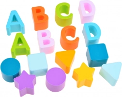 Acest set inteligent combină distracția cu învățarea într-un singur produs. Copiii introduc formele în decupajele corespunzătoare din capac, exersând gândirea logică, sortarea și percepția vizuală. Datorită elementelor colorate și literelor, își însușesc în mod natural bazele alfabetului și diferențierea formelor.