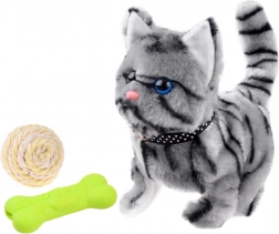 Drăgălașa pisicuță interactivă gri va cuceri inima fiecărui copil. După introducerea bateriilor, începe să se deplaseze înainte și înapoi, să miaune și să miște capul, gurița și coada. Setul include și accesorii de joacă – o os de cauciuc moale și o mingiuță colorată din șnur. Plusul plăcut și moale este ideal pentru îmbrățișat și joacă zilnică.