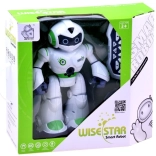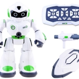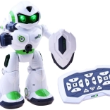 Robotul interactiv este jucăria ideală pentru copiii care adoră tehnologia modernă. La pornire, robotul te salută voios, își aprinde ochii LED și este gata de acțiune. Poate merge înainte și înapoi, se poate roti, aluneca, dans și emite sunete robotice caracteristice. Îl controlezi cu telecomanda sau comod prin gesturi ale mâinii datorită senzorului de mișcare integrat.