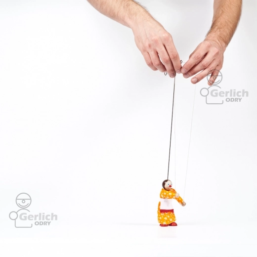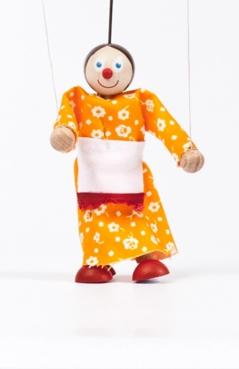 Datorită firelor de control și construcției ușoare, marioneta se manevrează simplu și este perfectă pentru primele reprezentații de teatru de păpuși.