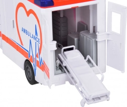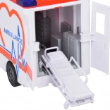 Ambulanța are uși laterale și din spate care se deschid, iar partea superioară detașabilă permite acces facil la interiorul detaliat, precum volan, bord și scaune. În pachet vei găsi și targă detașabilă, care aduce și mai multe posibilități de joacă.