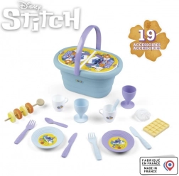 Bucurați-vă de farmecul unui picnic cu motivul STITCH! Acest coș de picnic pentru copii, ușor și ușor de transportat, cu mâner ergonomic, include 19 piese de accesorii pentru joacă distractivă de gătit și servire. Vasele și accesoriile colorate sunt ideale pentru dezvoltarea imaginației, împărțirea gustărilor și joaca cu prietenii.