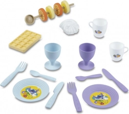 - Set complet de 19 piese – 2× ceșcuțe, 2× pahare cu picior, 2× farfurii, 2× linguri, 2× furculițe, 2× cuțite, waffle, bezea, frigăruie cu fructe și 4× felii de fructe.
