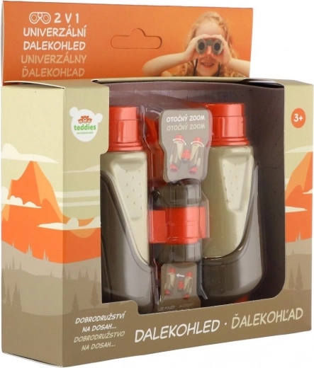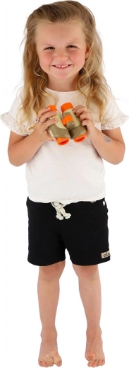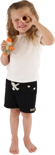 Acest binoclu versatil pentru copii este un partener grozav pentru micii exploratori. Datorită construcției ușoare din plastic, se ține confortabil în mâinile copiilor, iar elementele portocalii vii sporesc vizibilitatea și siguranța în timpul jocului în aer liber. Zoomul rotativ și focalizarea lină îi ajută pe copii să observe mai bine obiecte îndepărtate, păsări sau animale, stimulând curiozitatea și relația cu natura.