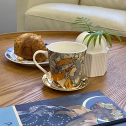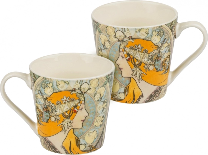 Descoperă farmecul artei secesiunii cu cana inspirată de lucrarea ALFONS MUCHA – Zodiac. Imprimarea precisă, cu linii fine, motive florale și portret feminin, transformă fiecare pauză într-o experiență estetică. Cana este realizată din porțelan de calitate, plăcut la atingere și cu o bună menținere a căldurii.