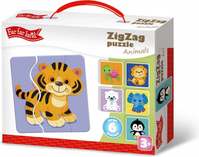 Puzzle ZigZag de la Far Far Land oferă distracție și valoare educativă datorită tăierilor zigzag și motivului colorat cu animăluțe. Setul conține 6 imagini.