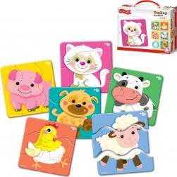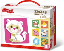 Puzzle ZigZag Animăluțe de la Far Far Land este o jucărie destinată copiilor de la 3 ani, care oferă distracție cu animale domestice în 6 imagini diferite. Designuri colorate și decupaje speciale zigzag îmbogățesc experiența de joc.