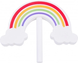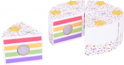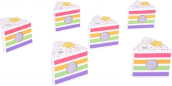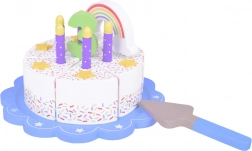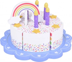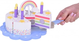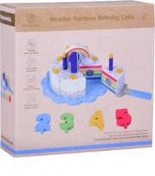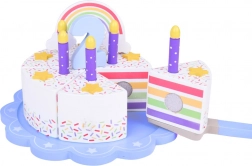 Pe vârful tortului se află un curcubeu colorat detașabil, care aduce farmec întregului set. Fiecare bucată de tort are un spațiu pentru o lumânare, fiind astfel o alegere perfectă pentru a se juca de-a petrecerea de aniversare.