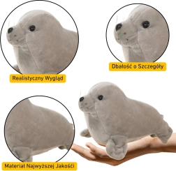 O focă de pluș gri adorabilă, cu lungimea de 24 cm, este un accesoriu ideal pentru camera copiilor și servește și ca jucărie de pluș confortabilă. Fabricată din material moale și plăcut la atingere, oferă confort atât la joacă, cât și la somn. Datorită dimensiunii compacte, copilul o poate lua oriunde cu el.
