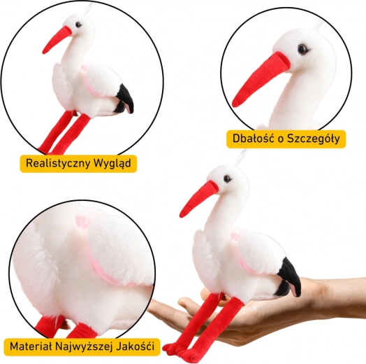 O barză de pluș adorabilă, cu înălțimea de 37 cm, realizată din material moale și plăcut la atingere. Datorită execuției atente, este sigură și durabilă, ideală pentru camera copilului și pentru călătorii. Dimensiunea compactă se potrivește perfect mâinilor mici și invită la îmbrățișări și joacă creativă.