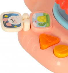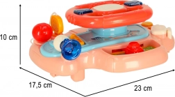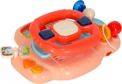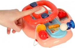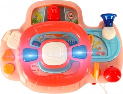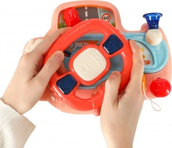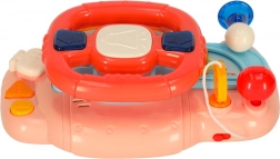 Volanul interactiv pentru copii este o jucărie grozavă pentru joacă creativă acasă și în deplasare. Copilul poate roti volanul și „conduce” micuța mașinuță de pe bord, fiind însoțit de pornirea motorului, claxon, semnalizări cu lumină și vesele melodii. Datorită reglajului volumului, jocul se adaptează ușor mediului.
