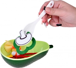 Setul Avocado este ideal pentru copiii care învață prin joc. Bolul plastic colorat în formă de avocado, cu diverse ingrediente, susține imaginația și creativitatea copiilor. Cu ajutorul acestei jucării, cei mici se pot apropia de lumea adulților și pot învăța obiceiuri alimentare sănătoase.