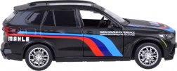 Modelul auto BMW X5 M este realizat cu precizie și atenție la detalii, apreciat de orice entuziast al mașinilor, mici și mari. Caroseria metalică și roțile din cauciuc protejează podeaua de daune în timpul jocului. Șasiul este fabricat din plastic, ceea ce îi sporește ușurința.