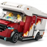 Porniți în excursii de vis cu setul LEGO City rulotă de vacanță. Interiorul care se deschide ascunde un spațiu de locuit modern cu bucătărie, toaletă, paturi supraetajate și pătuț, plus masă și scaune pentru exterior și interior, chitară și foc de tabără. Adăugați minifigurinele mamei, tatălui și bebelușului și bucurați-vă de joacă creativă și povești în fiecare zi.