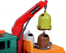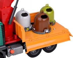 Setul include containere de gunoi care pot fi scoase și capacele deschise, învățând copiii despre importanța sortării deșeurilor.
