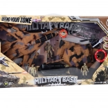 Creați o scenă militară cu acest set care include soldați și un elicopter în cadrul unei baze militare.