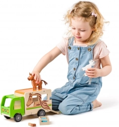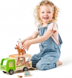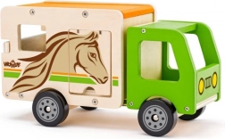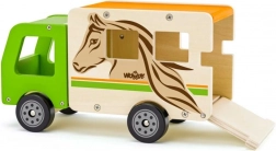 Acest transportor de cai din lemn, realizat cu grijă, le oferă copiilor distracție realistă. Cabina verde, aspectul natural al lemnului și imprimeul cu cai creează un design atrăgător care invită la povești de la fermă și de pe hipodrom. Rampa rabatabilă facilitează încărcarea cailor, iar construcția rezistentă face față jocului zilnic.