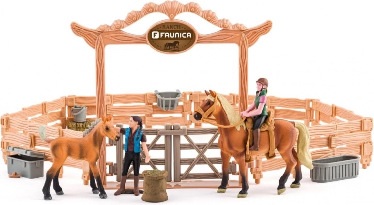 Țarcul circular cu poartă realistă creează un mediu autentic pentru antrenament și îngrijirea cailor. Copiii își construiesc propriul centru ecvestru și inventează povești nesfârșite.