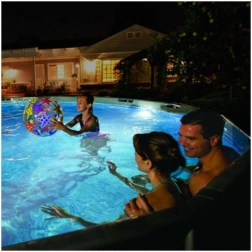 Lampa este compatibilă cu majoritatea piscinelor supraterane și pliabile, iar puterea sa acoperă o lungime de până la 7,32 m. Construcția durabilă și etanșă, multiple moduri de culoare și controlul simplu o fac un accesoriu ideal pentru băi de seară sigure și stilate.