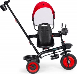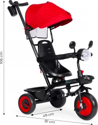 Această tricicletă multifuncțională 3‑în‑1 este partenerul ideal pentru plimbări și excursii mai lungi. Datorită construcției gândite, adaptezi ușor echiparea la vârsta și abilitățile copilului: de la modul complet asigurat cu copertină, bare de protecție și mâner parental, la mers semi-independent cu mâner și până la tricicletă clasică pentru pedalare autonomă.