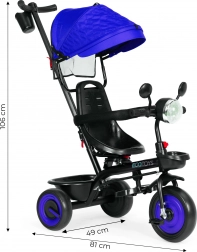 Tricicleta universală pentru copii 3‑în‑1 ECOTOYS crește odată cu copilul tău, de la 6 luni la 6 ani. Oferă un scaun rotativ 360°, structură solidă din oțel, roți EVA care nu necesită întreținere și copertină detașabilă. Pentru confort și siguranță include mâner de ghidare pentru părinți, bare de protecție, suporturi rabatabile pentru picioare, două coșuri și lumină interactivă cu melodii.