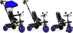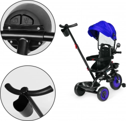 Sistemul 3‑în‑1 permite îndepărtarea treptată a copertinei, a barelor de protecție și a mânerului pentru părinți – de la modul „tricicletă cu ghidare” până la tricicletă tradițională pentru mers independent. Echiparea practică include lumină interactivă cu 4 melodii și iluminare colorată, suport pentru băuturi și 2 coșuri de depozitare pentru tot ce este necesar la plimbare.