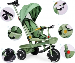 Tricicleta multifuncțională pentru copii ECOTOYS combină căruciorul și bicicleta într-un singur produs. Oferă scaun rotativ la 360°, capotină detașabilă, centuri de siguranță și direcție parentală. Datorită roților EVA durabile, cadrului din oțel și dotărilor bogate (lumini cu sunete, coșulețe, suport pentru băuturi), asigură plimbări confortabile și sigure pentru copii de la 6 luni până la 6 ani.