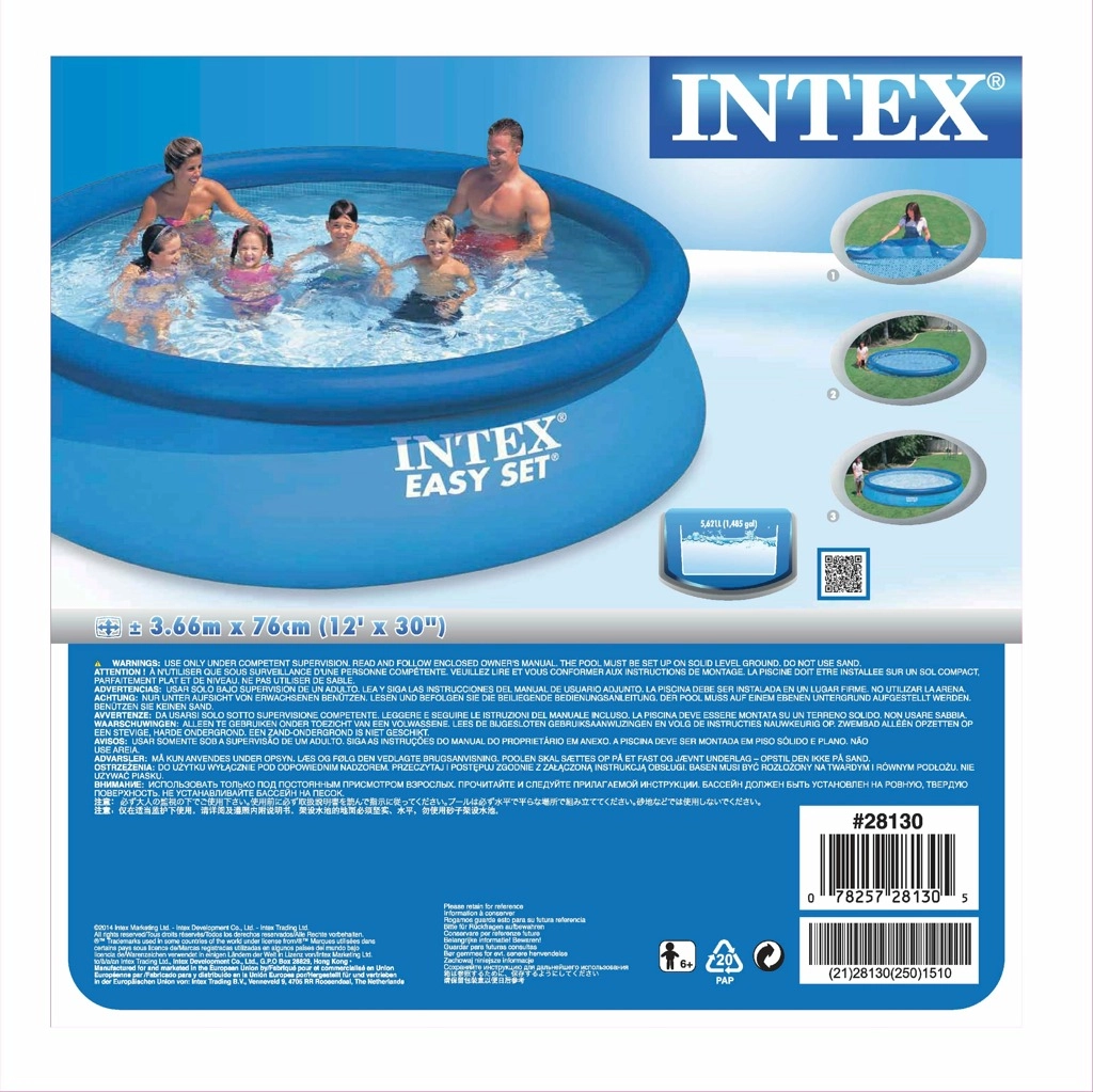 Bucură-te de vară cu piscina de familie INTEX Easy Set cu diametrul de 366 cm și înălțimea de 76 cm. Datorită construcției autoportante cu inel gonflabil, o montezi în câteva minute – trebuie doar să o umfli și să o umpli cu apă. PVC triplu strat rezistent, întreținere ușoară și golire rapidă o fac o alegere excelentă pentru grădină.